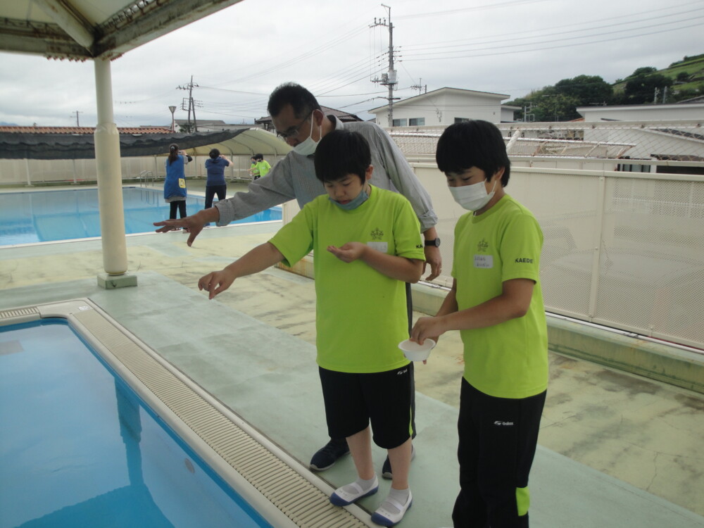 山梨県立かえで支援学校 > 活動のようす > 小学部 > プール開き 2023年6月9日カテゴリー: 小学部 活動のようす プール開き 今年度も小学部のみプールに入ります。プール開きとして、校長先生、教頭先生と5・6年生の代表者でお清めの儀式をしました。今年度も安全に配慮しながらプール活動を行っていきたいと思います。