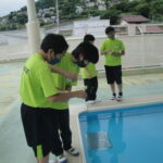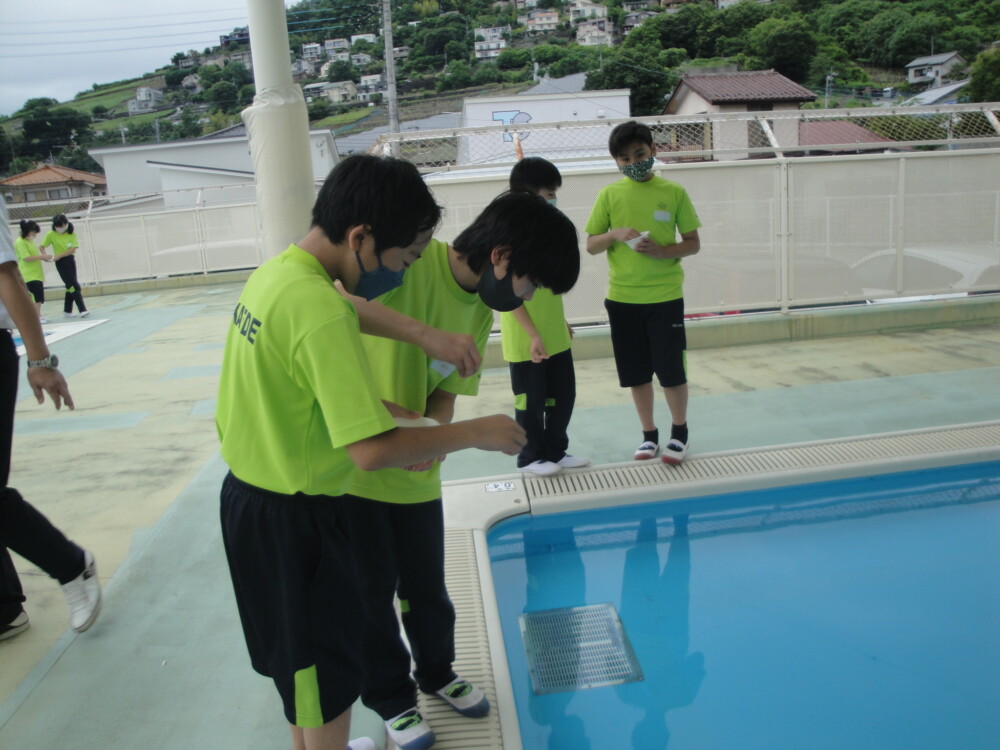 今年度も小学部のみプールに入ります。プール開きとして、校長先生、教頭先生と5・6年生の代表者でお清めの儀式をしました。今年度も安全に配慮しながらプール活動を行っていきたいと思います。