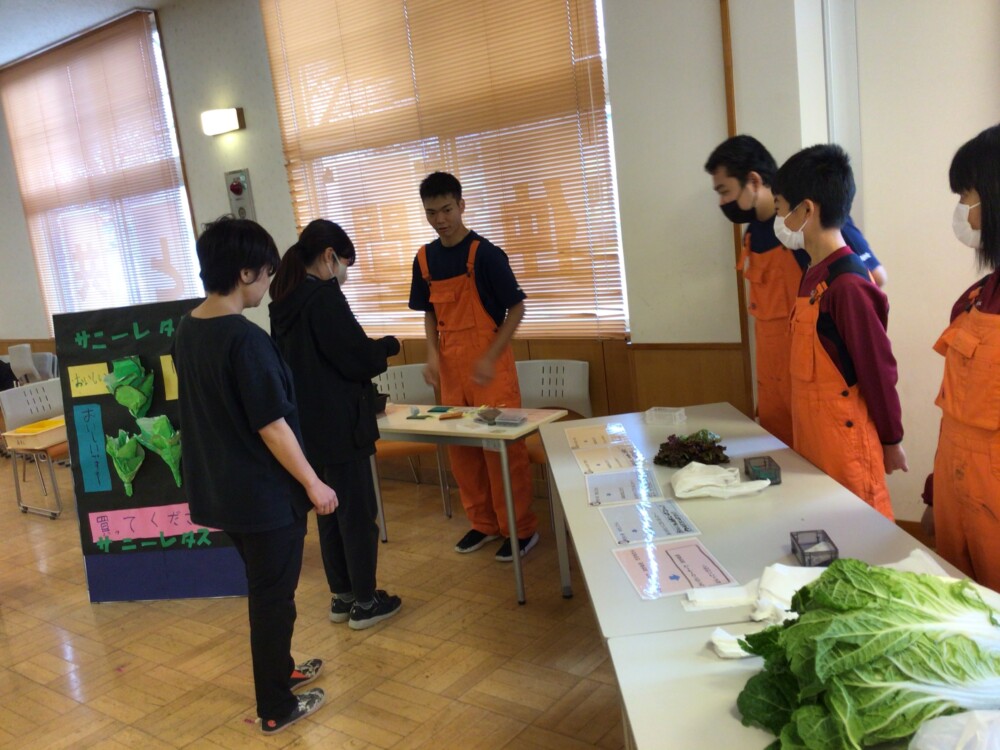 中学部は集団を意識し、友達と力を合わせた演技で、絆が感じられる発表でした。 高等部は、「働く」というテーマのもと、日々丁寧に制作してきた製品や心を込めて育ててきた野菜を販売しました。元気な呼び込みやお客様との和やかなコミュニケーションがあり、活気溢れる販売会となりました。