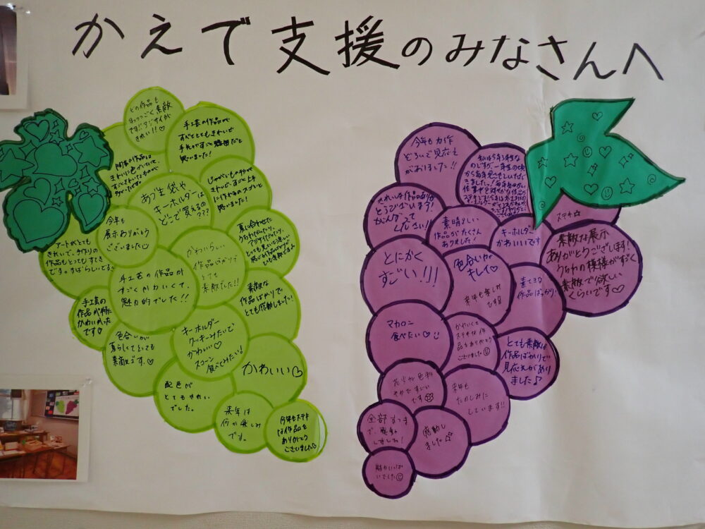 今年度の甲府東高等学校との学校間交流1回目は作品交流を行いました。6月18日、19日の甲府東高校の学園祭(蒼龍祭)に高等部生徒の美術の授業の作品と作業班の製品を展示させていただきました。